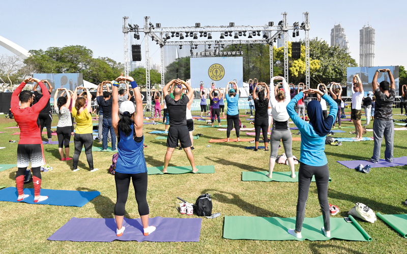 بهدف تغيير المفهوم السائد حول اليوغا، قدمت مجموعة من مدربات جولدز جيم تمارين «يوغا فليكس»، والتي لا تقوم على التأمل، بل تحمل الكثير من حركات الرياضة التي تقدم للجسم المرونة واللياقة البدنية، لاسيما إن تمت ممارستها مرتين في الأسبوع على الأقل. وقد تجمهر المشاركون في التحدي لممارسة تمارين اليوغا، وكانت غلبة الحضور النسائي واضحة في هذه الحصة التي قدمت على مدى 30 دقيقة.