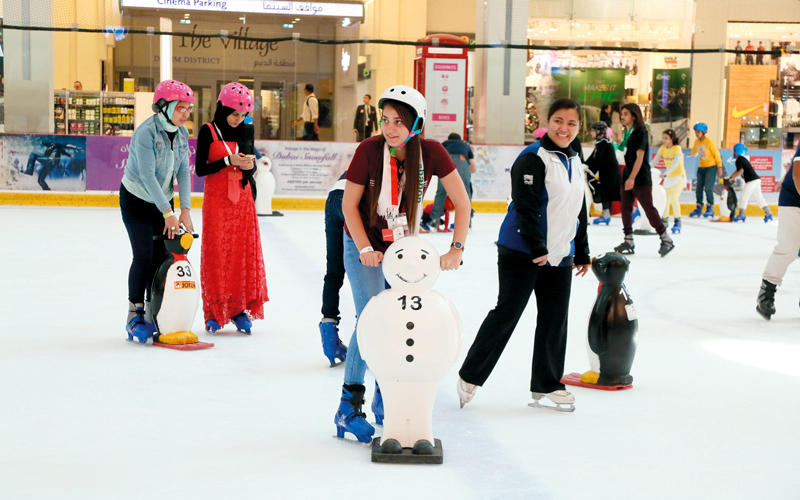 أبطال التحدي استمتعوا بالتزلج على الجليد في حلبة دبي للتزلج. من المصدر
