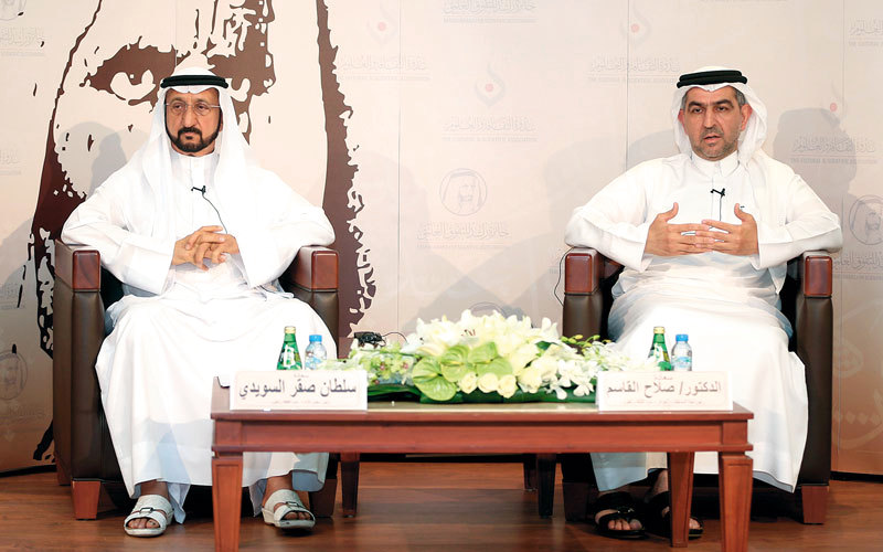 جاء الكشف عن ذلك خلال مؤتمر صحافي استضافته ندوة الثقافة والعلوم، أمس، في مقرها بالممزر، وتحدث فيه بشكل رئيس، كل من رئيس مجلس إدارة الندوة سلطان صقر السويدي، وعضو مجلس الإدارة رئيس لجنة المسابقات والجوائز د.صلاح القاسم.