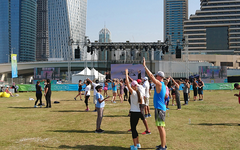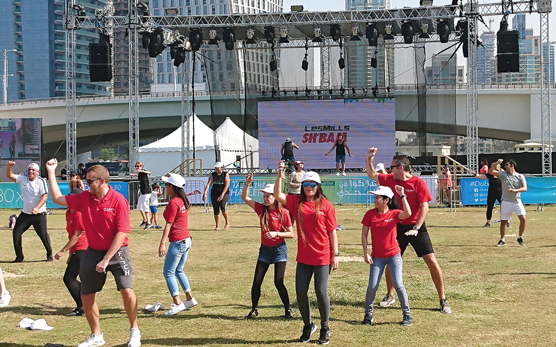 «الإمارات اليوم» واكبت الأجواء الترفيهية التي وفرتها «تحدي دبي للياقة» في مدخل «سكاي دايف» في ظهيرة اليوم الثاني من التحدي، وشاركت فيها كوكبة من المهتمين والمولعين بالإيقاعات اللاتينية الساحرة.