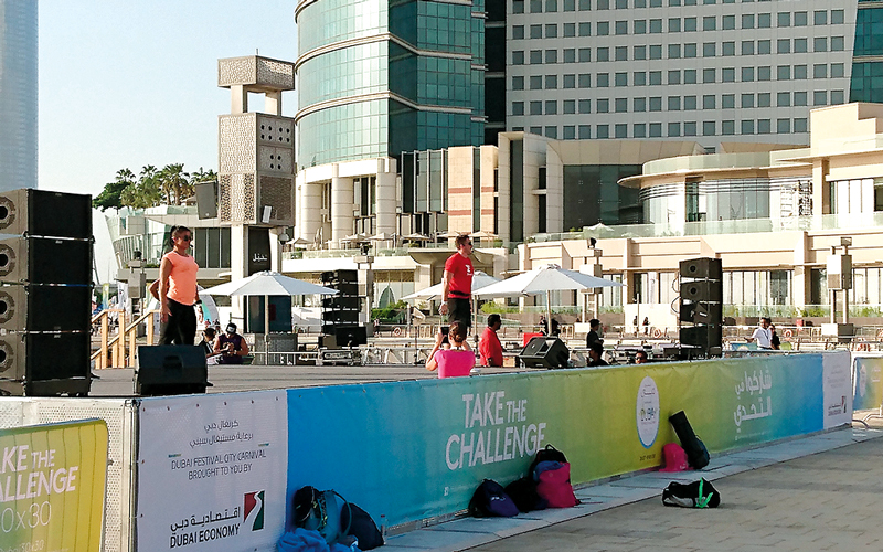 على وقع الإيقاعات اللاتينية المبهجة، وفي أجواء رياضية، انطلقت فعالية رقصة «الزومبا»، التي احتضنتها المنصة الرئيسة لـ«تحدي دبي للياقة»، في دبي فيستيفال سيتي أمس، خلال اليوم الأخير من المبادرة.
