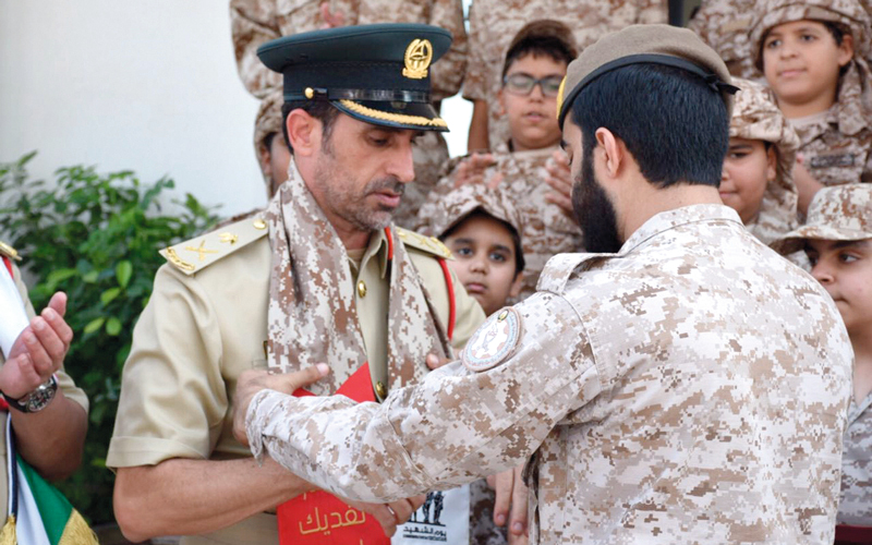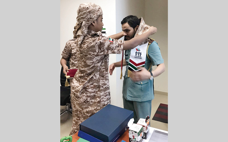 وقام أبناء المؤسسة بإهداء الأوشحة للقائد العام لشرطة دبي اللواء عبدالله بن خليفة المري، ومدير إذاعة الشارقة محمد خلف، ورئيس هيئة الشارقة الصحية عبدالله علي المحيان، ونائب مدير بلدية دبا الحصن سيف حسن الظهوري، وإدارة جوازات خورفكان.