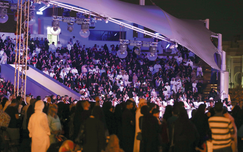 وشهد الحفل الغنائي إقبالاً كبيراً، إذ بلغ عدد الحضور أكثر من 4000 شخص من المواطنين والمقيمين، وامتلأت مدرجات المسرح مبكراً بالحضور، واضطر عدد منهم إلى افتراش الأرض، ومتابعة فقرات هذا الحفل الفني المميز. كما تضمن الحفل استعراض فرقة المشاة، وعروضاً وطنية أخرى. ووجهت اللجنة العليا لاحتفالات إمارة الشارقة باليوم الوطني الـ46 شكرها لشرطة الشارقة، للجهود الكبيرة والمتميزة التي بذلها أفراد ومراتب شرطة الشارقة في تأمين مواقع الاحتفالات، وتنظيم حركة الأفراد والمركبات، ومساعدة الجمهور، وتمكينهم من المشاركة في هذه الاحتفالات بكل يسر.