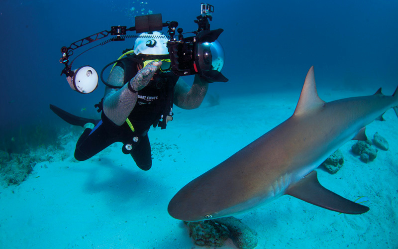 لعل التوازن البيئي على سطح الكرة الأرضية ما هو إلا جزء من التوازن الدقيق في نظام الكون، وهذا يعني أن عناصر أو معطيات البيئة تحافظ على وجودها ونسبها المحددة كما أوجدها الله. لكن الإنسان بلغ في تأثيره في بيئته مراحل تنذر بالخطر، إذ تجاوز في بعض الأحوال قدرة النظم، التى تهدد حياة الإنسان وبقاءه على سطح الأرض، ولا يدرك الصياد المستنزف في صيده الجائر مدى الضرر الذي يلحقه بالبشرية، عند إخلاله بهذه التوازنات الكونية، فهنالك أسماك هجرت مساراتها لكثرة تهديد الإنسان لها، واصطيادها بشكل تجاوز العشوائية. صورة لي مع القرش الكاريبي النشط في منطقة جزر البهاما.