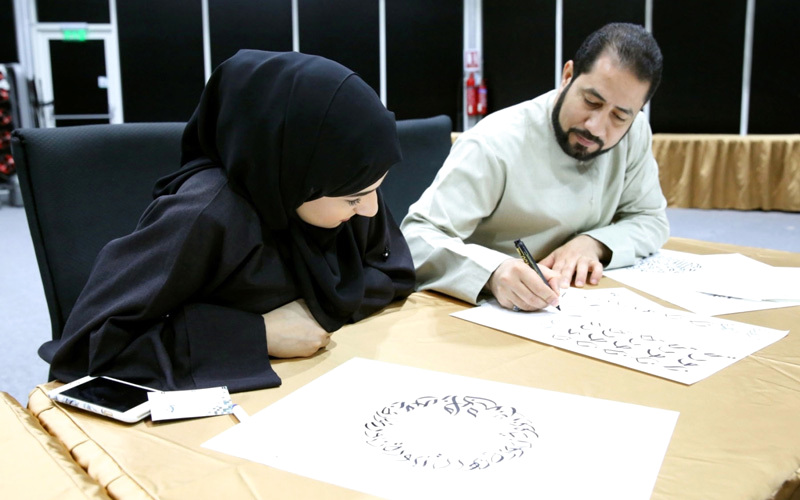 الفعاليات ضمت ورش عمل للخط العربي. وام