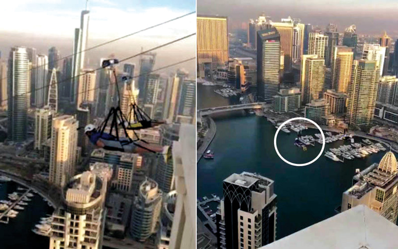 يتخلّص من «أزمة الريال» بالتزحلق من ناطحة سحاب في «مارينا»