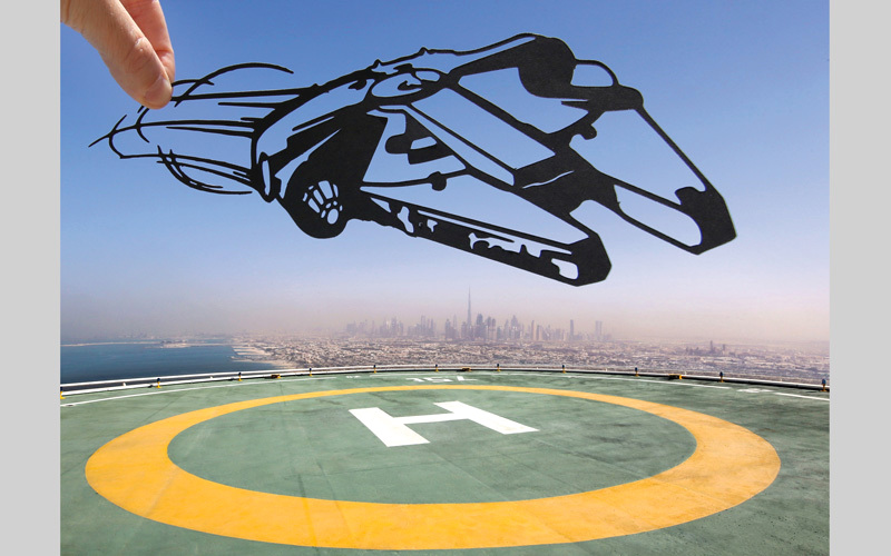 وكان بايبربويو قد سافر من لندن إلى دبي لتصميم عمل فني يجمع بين الإبداعات المعمارية وسلسلة الأفلام الشهيرة، احتفالاً بإصدار فيلم