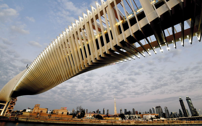 تزدان القناة المائية في دبي بعدد من الجسور ذات التصاميم الهندسية الخاصة والجميلة. عدسة الزميل باتريك كاستيلو رصدت بعض الجوانب الجمالية من أحد هذه الجسور ذات الشكل والتصميم المميّزين.