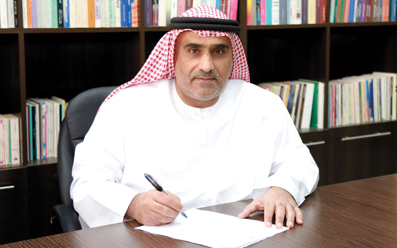 عبدالله المناعي خلال التوقيع على الوثيقة. من المصدر