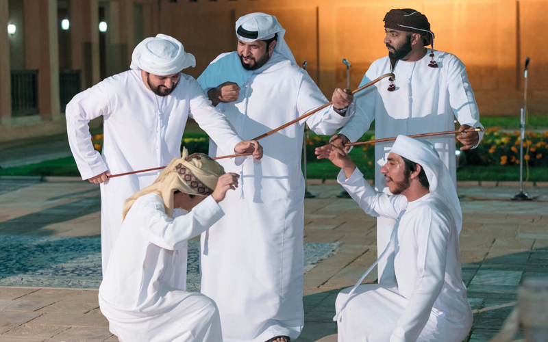 وتحتفي الفعاليات الختامية، التي تنظم اليوم وغداً، بفنون الأداء في منطقة الخليج العربي، بمشاركة فرق شعبية من سلطنة عُمان، ومملكة البحرين، إلى جانب فرق من دولة الإمارات.