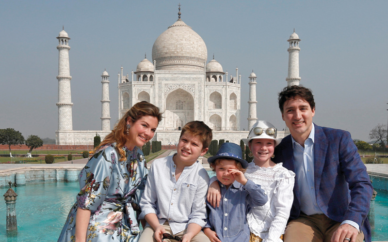 بدأ رئيس وزراء كندا جاستن ترودو، برفقة أسرته، جولته للهند، بزيارة تاج محل، وهو أثر يرمز لحب إمبراطور هندي لزوجته.