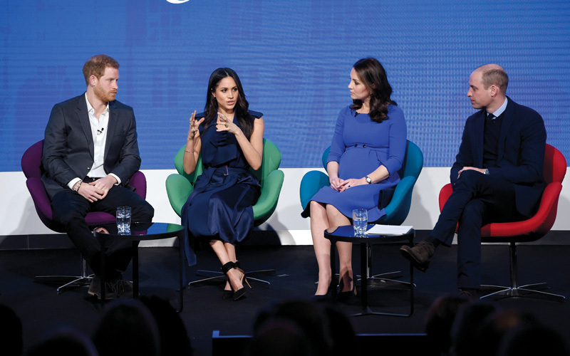 اجتمع الرباعي الملكي البريطاني، دوق ودوقة كمبردج والأمير هاري وخطيبته ميغان ماركل، في أول ظهور علني لهم في لندن، أمس، للمشاركة في المنتدى السنوي للمؤسسة الملكية.