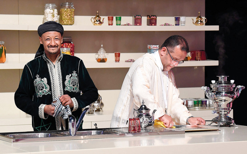 ويمثل المطبخ المغربي عنصراً رئيساً من عناصر الإبهار وجذب الجمهور، ضمن فعالية «المغرب في أبوظبي» التي تنظمها وزارة شؤون الرئاسة، في مركز أبوظبي الوطني للمعارض، وتستمر حتى 19 مارس الجاري، في إطار تعزيز ودعم العلاقات التاريخية والأخوية التي تجمع دولة الإمارات العربية المتحدة بالمملكة المغربية الشقيقة في جميع المجالات.