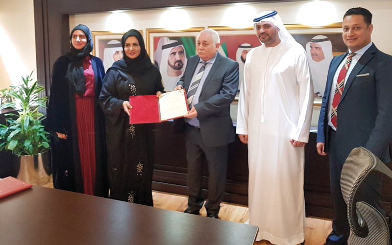 وتسلم رئيس مجلس إدارة المختبر، المهندس محمد العلمي، شهادة الاعتماد من رئيسة مركز اعتماد تقييم المطابقة في دبي، الدكتورة أمينة أحمد، بحضور رئيسة قسم الاعتماد المهندسة علياء المزروعي، وضابط اعتماد المطابقة الدكتور قاسم حمود الشامسي.