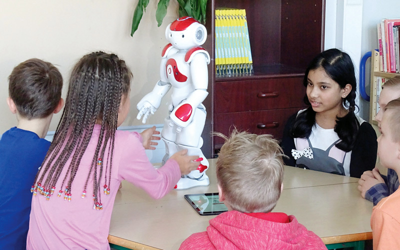 لدى إلياس، مدرس اللغات الجديد في مدرسة ابتدائية بفنلندا، صبر لا ينفد على التكرار، ولا يُشعر تلميذاً أبداً بالحرج من طرح سؤال، والأكثر من ذلك أنه يمكنه الرقص.. وإلياس الذي يبلغ طوله قدماً تقريباً، إنسان آلي، وواحد من أربعة أجهزة في برنامج تجريبي بمدرسة ابتدائية في مدينة تامبيري، جنوب فنلندا.