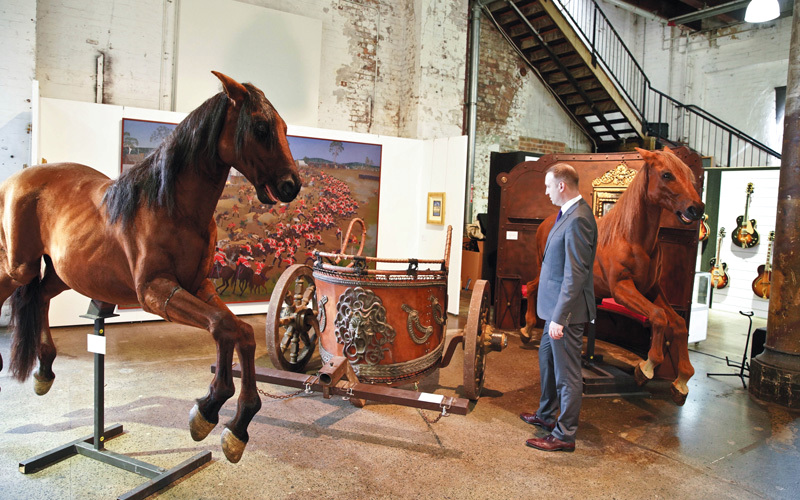 عربة على الطراز الروماني، وساعة يد رولكس ذهبية، وحزام سترة مصنوعة من الجلد، وكمان عمره 128 عاماً.. مقتنيات للنجم الأسترالي راسل كرو حققت أكثر من 2.8 مليون دولار عند بيعها في مزاد. وفاجأ كرو الحضور بظهور غير متوقع في مزاد يحمل عنوان «فن الطلاق»، أقيم في سيدني أول من أمس، واجتذب عشرات المشترين والمتفرجين. واشتمل المزاد على نحو 200 من مقتنيات كرو، من بينها أزياء وإكسسوارات من التي استخدمها في بعض من أشهر أفلامه، مثل «المصارع - جلادياتور» و«ماستر آند كوماندر» و«إل.إيه كونفيدينشيال» و«ذا إنسيدر».