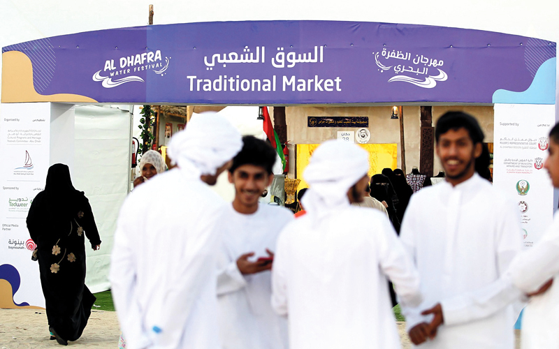 إبداعات الماضي وعراقة التاريخ تتجلى في السوق الشعبي المقام ضمن فعاليات المهرجان الظفرة البحري، حيث الماضي العريق بأصالته من خلال مشغولات يدوية وأعمال تراثية، تنسجها مبدعات إماراتيات يتفنن في نقل التراث العريق إلى الأجيال الحالية، وجمهور كبير من داخل الدولة وخارجها، يحرص على متابعة تلك الأعمال التراثية والمشغولات اليدوية التي تم تنفيذها بحرفية عالية.
