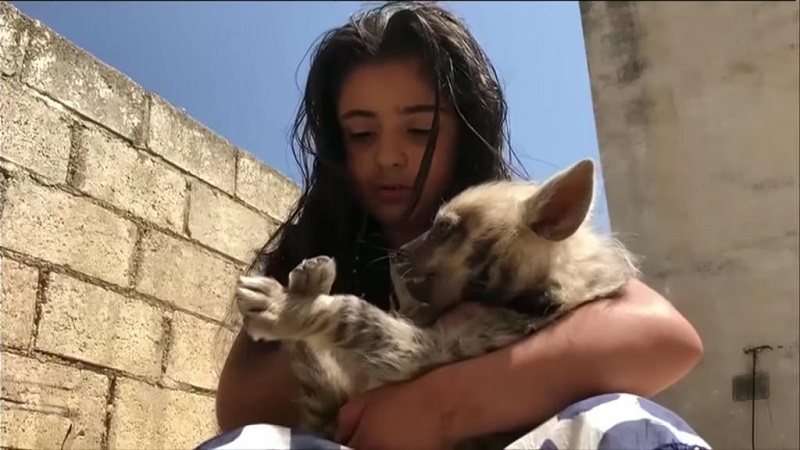 طفلة أردنية تربي الضباع كحيوانات أليفة