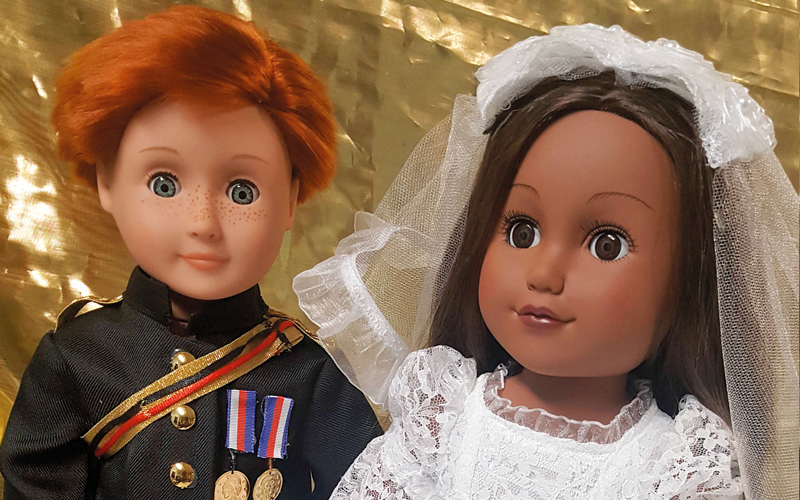 وتبيع لي الآن لمحبي العائلة البريطانية المالكة في أنحاء العالم دمى في أزياء صممتها على النحو الذي ترى أن الأمير هاري وعروسه ربما يرتديانها عندما يسيران على ممشى قلعة وندسور في الـ19 من مايو المقبل.
