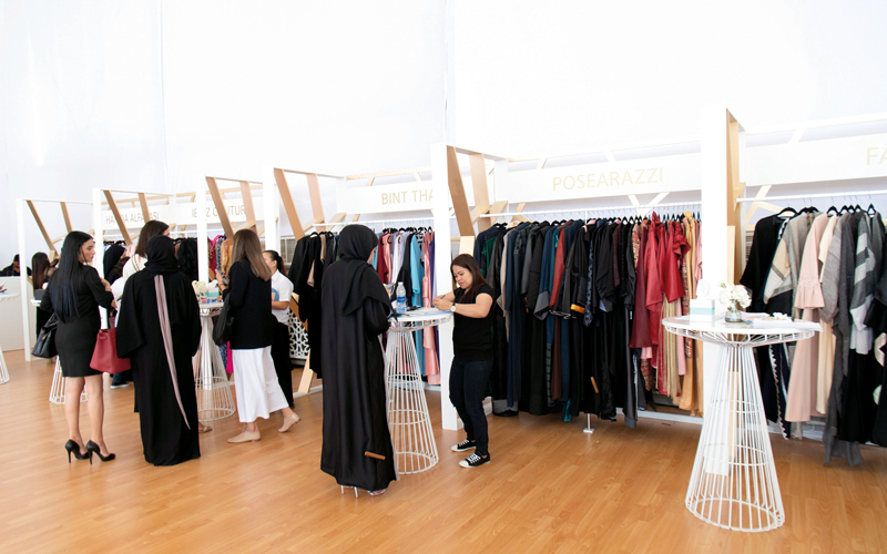ويضم المعرض أكثر من 1000عباية وقفطان من أحدث إبداعات المصصمات الإماراتيات ودور الأزياء في الدولة، بسعر مخفض قيمته 1000 درهم للقطعة.