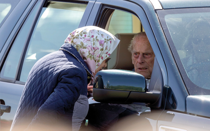 قاد الأمير البريطاني فيليب السيارة، متجهاً إلى عرض للخيل في وندسور، أمس، في أول ظهور علني لزوج الملكة إليزابيث البالغ من العمر 96 عاماً، منذ أن غادر المستشفى الشهر الماضي، بعد خضوعه لعملية لتغيير مفصل الفخذ. وجلس الأمير، وهو ضابط سابق في البحرية خلف عجلة القيادة في سيارة لاند روفر سوداء، عند موقع إقامة عرض الخيول الملكية في وندسور، وتبادل الحديث مع الملكة. وكان الأمير فيليب اعتزل العمل العام، أغسطس الماضي، وقال حينها مازحاً إنه لم يعد قادراً على «الوقوف كثيراً».