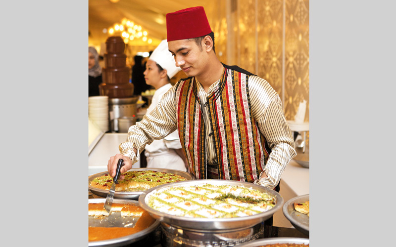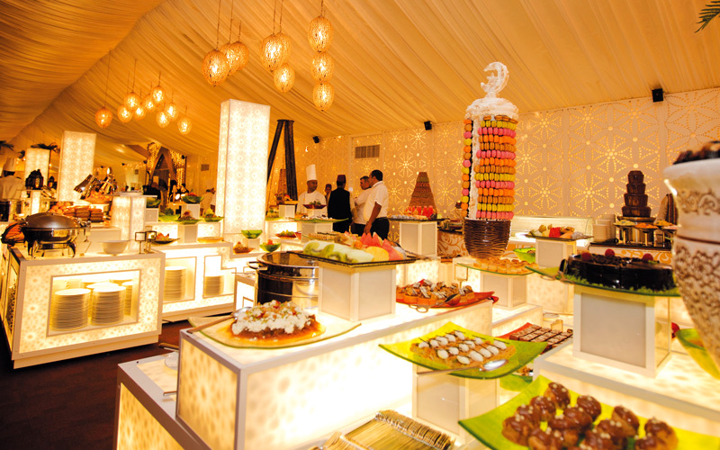 وتقدم خيمة أساطير الرمضانية هذا العام إضافة قيمة لقائمة أطعمتها، حيث يضيف إليها كل من الطاهي الشهير، غوردون رامزي، من مطعم «بريد ستريت كيتشين»، وجورجيو لوكاتيللي من مطعم «روندا لوكاتيللي»، وجباتهما المبتكرة. ويدير مطبخ الطعام في الخيمة الشيف، علي البرجي، الطاهي الرئيس للوجبات الشرقية في مطعم «أيامنا». ويمكن للضيوف الاستمتاع بالخيارات المتعددة التي تتيحها الخيمة لوجباتهم المفضلة، حيث تقدم أنواعاً كبيرة من الأطباق العربية التقليدية التي تتضمن الكباب والشاورما والمشاوي العربية وغيرها، إضافة إلى مجموعة واسعة من الأطباق الأوروبية. كما تقدم خيمة أساطير مختلف أطباق الحلويات التقليدية الخاصة بالشهر الفضيل، إضافة إلى مجموعة متنوعة من المثلجات وأصناف الشوكولاتة.