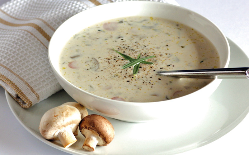 - تضاف الكريمة والحليب مع التحريك، ويجب الاستمرار بغلي المزيج ببطء الى أن يتجانس. يوضع المزيج في الخلاط حتى يصبح قوامه ناعماً، ثم يضاف الملح والفلفل.