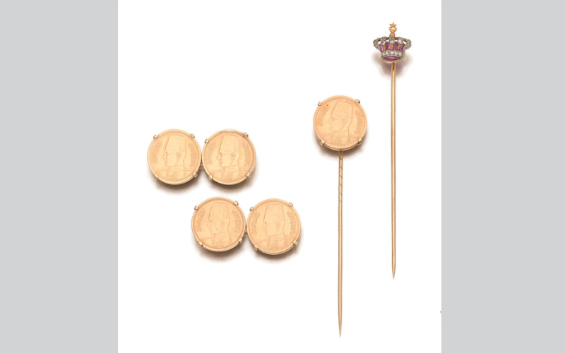 وضمت المجموعة الأولى ملقط ربطة العنق، وأزرار أكمام، بالإضافة إلى ملقط ربطة عنق ثاني مرصع بالياقوت والألماس. وقد بيعت هذه المجموعة بـ 19 ألف و 766 درهما.
