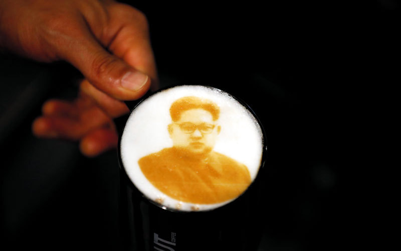 فمنذ أن عقد كيم قمة في أبريل الماضي بوجه بشوش مع الرئيس الكوري الجنوبي مون - جيه إن، يقدم مقهى «إن آند أوت» في مدينة جونجو، التي تبعد ثلاث ساعات عن العاصمة سيؤول، قهوة لاتيه تزين رغوتها صور الزعيمين.