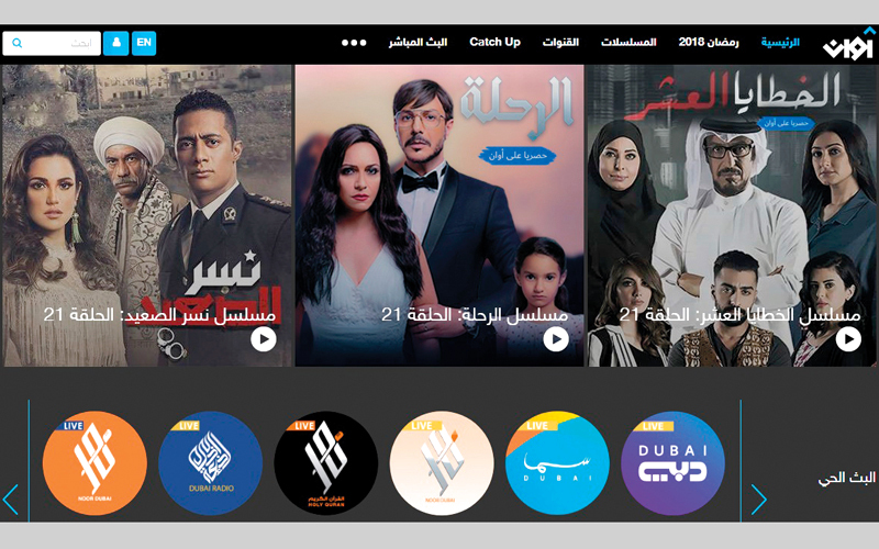 وفي إنجاز رقمي جديد يضاف إلى قنوات مؤسسة دبي للإعلام، أعلنت إدارة الإعلام الرقمي في قطاع الإذاعة والتلفزيون عن أرقام المتابعات التي حققتها منصة وتطبيق «آوان» الرقمية خلال شهر رمضان المبارك، والتي تعد أكبر مكتبة رقمية للإعلام المحلي والعربي في الشرق الأوسط توفر تجربة فريدة من نوعها للجمهور العربي للاستمتاع بالمشاهدة الرقمية المتميزة، من خلال باقة خدمات رقمية متنوعة وبجودة عالية، وعلى جميع المنصات الذكية والرقمية، وتجاوز إجمالي عدد المشاهدات إلى أكثر من (10.162.444) في سابقة هي الأولى من نوعها على مستوى العالم العربي والشرق الأوسط، حيث نجح مسلسل «نسر الصعيد» في تحقيق المرتبة الأولى بنسب المشاهدة التي تجاوزت (5851563) مشاهدة، واستطاع مسلسل «الخطايا العشر» الذي يبث حصرياً عبر منصة «آوان» في تحقيق المرتبة الثانية بعدد (1621258) مشاهدة في شهر رمضان المبارك، فيما نجح المسلسل الإماراتي «حدك مدك» في الوصول إلى المرتبة الثالثة بمشاهدات وصلت إلى (553751) مشاهدة، تلاه مسلسل «عبرة شارع» بعدد (407643) مشاهدة، كذلك الحال بالنسبة إلى مسلسل «مع حصة قلم» بعدد (382282)، فيما تقدم مسلسل «الخافي أعظم» بعدد (267829)، وحقق مسلسل «عطر الروح» للنجمة هدى حسين (260724) مشاهدة عبر منصة «آوان»، فيما حل مسلسل «ليالي أوجيني» في المرتبة الثامنة بعدد (231987)، وفي المرتبة التاسعة مسلسل «المواجهة» بعدد مشاهدات وصل إلى (184954)، ومسلسل «عزمي وأشجان» بعدد (172859) مشاهدة في الفترة نفس، أما مسلسل «ضد مجهول» فوصل عدد مشاهداته إلى (115540)، ونال المسلسل البدوي «نوف» مشاهدات وصلت إلى (67142)، فيما اختتم مسلسل «الرحلة» الحصري عبر منصة «آوان» عدد المشاهدات التي وصلت إلى (44912) خلال شهر رمضان المبارك.
