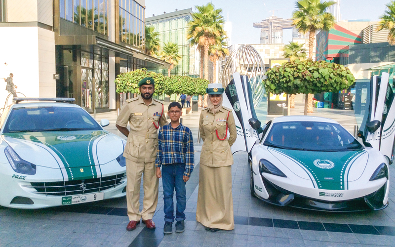 شرطة دبي تلبي أمنية طفل بركوب سيارة فارهة