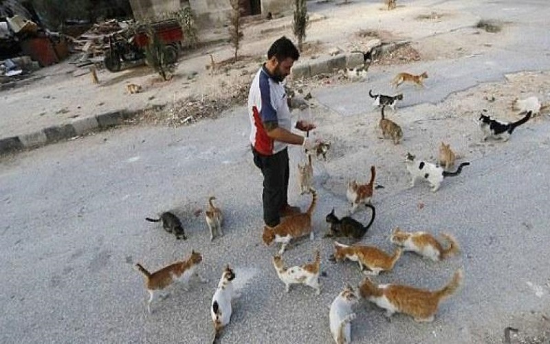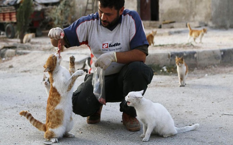 عندما يجلس مؤسس أول محمية للقطط في سورية بريف حلب في فناء المحمية تسرع نحوه ست قطط على الأقل ويصعد بعضها فوق كتفيه، وينتظر بعضها أن يمسح عليها بيده. وبمساعدة من جمعيات خيرية يوفر سائق الإسعاف محمد علاء الجليل، مؤسس دار القطط، المأوى والطعام والرعاية الطبية لنحو 80 قطة.