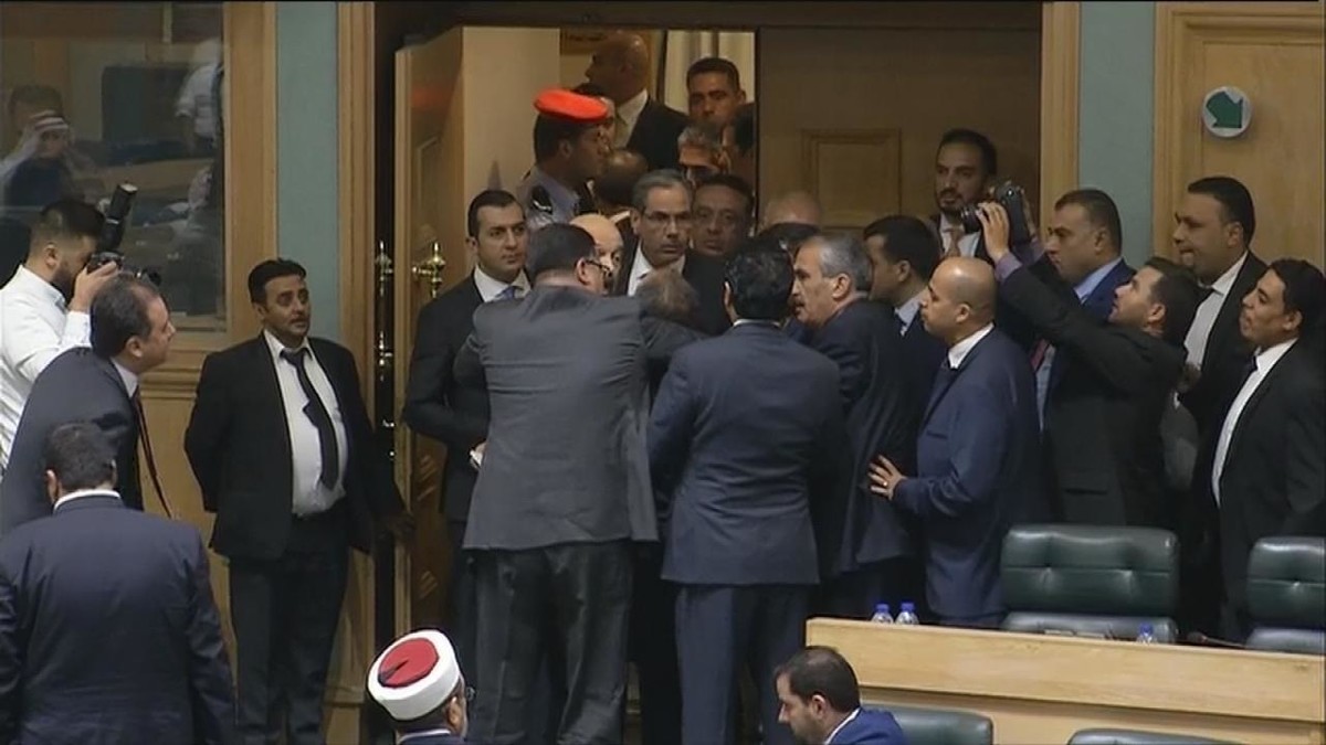 بالصور ..يسقط من شرفة البرلمان الأردني احتجاجا .. والرزاز يتدخل