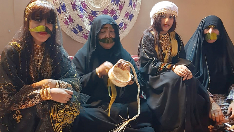 وتجاوز عدد زوار جناح دائرة الثقافة والسياحة - أبوظبي، المقام في جناح الحي العربي، الـ10 آلاف زائر يومياً، حيث شكلت الحرفيات الإماراتيات المشاركات في السوق نقطة جذب رئيسة لزوار المهرجان، الذي تنظمه الهيئة العامة للسياحة والتراث الوطني في المملكة العربية السعودية، حيث قدمنّ عروضاً حية لمهارات اشتهرت بها المرأة الإماراتية في العديد من الصناعات، لاسيما حياكة «السدو» المدرج على قائمة اليونسكو للتراث الثقافي غير المادي للبشرية، وهو فن حياكة الصوف لإنتاج بيوت الشعر والأبسطة المختلفة، إلى جانب أعمال «الخوص» من سعف النخيل المجفف، وتشكيل منتجات مختلفة تستخدم في الحياة اليومية، مثل السلال وأغطية الطعام والمهفات وغيرها. كما عرضن العديد من المنتجات المطوّرة من مواد تقليدية تلبي الاحتياجات المعاصرة، إلى جانب الملابس التقليدية التراثية والبخور والتلي.