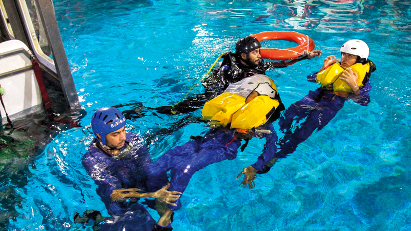 تدرّب طلاب مبادرة «طيار المستقبل»، التي تنظمها إدارة طيران شرطة أبوظبي بقطاع العمليات المركزية، على «الخروج من الطائرة تحت الماء»، في دورة تدريبية عملية بمركز الإمارات للتطوير الفني والسلامة في أبوظبي.