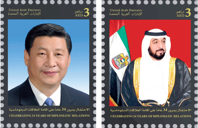 أصدرت مجموعة بريد الإمارات طوابع بريدية تذكارية، بمناسبة الاحتفال بمرور 34 عاماً على إقامة العلاقات الدبلوماسية بين دولة الإمارات العربية المتحدة وجمهورية الصين الشعبية، واحتفاءً بزيارة الرئيس الصيني شي جين بينغ للدولة، كحدث تاريخي مميز، وجاء الإصدار بالتعاون مع وزارة الخارجية الإماراتية.