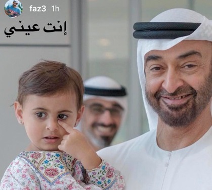 محمد بن زايد يحمل حفيدته.. وحمدان بن محمد معلقاً: «إنت عيني»