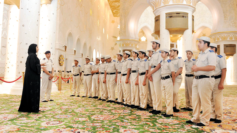 وتجوّل الطلاب من «دفعتي أبوظبي والعين» في رحاب الجامع، الذي يعد إحدى أهم الوجهات الحضارية ذات الطابع الديني عالمياً، ويعكس التنوع الثقافي والفكري للمجتمع، كما تعرّفوا إلى واحة الكرامة، التي تم تشييدها تخليداً لبطولات وتضحيات شهداء الإمارات.