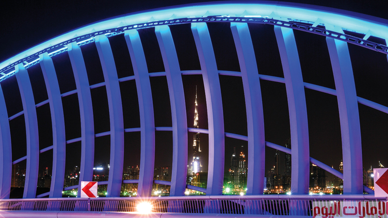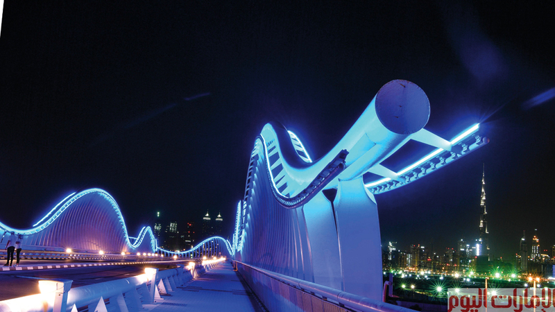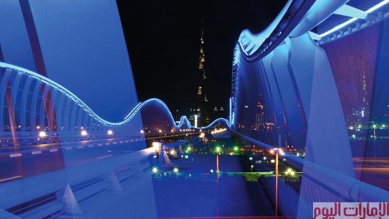 لقطات ليلية لـ«جسر ميدان» في دبي، وتبدو في الصور أضواء برج خليفة، شاهدة على رقيّ وعبقرية الجمال الذي تتسم به فلسفة الإعمار في مدينة دبي، التي لا تنشغل بالإنشاءات بقدر ما هي منهمكة بالقيمة الجمالية المضافة التي تحققها طفرة المباني والإعمار.