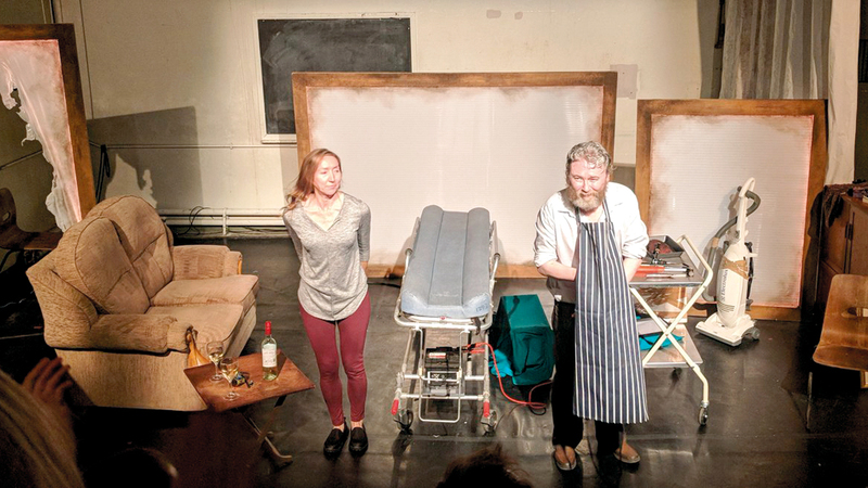 وبإضاءة خافتة وموسيقى تصويرية حزينة تنذر بالخطر، وأداء مسرحي في مساحة محدودة، تمكنت المخرجة من تشكيل أجواء مشحونة. وتتصاعد الأحداث الدرامية لحين الوصول إلى المشهد الذي يُجري فيه جيم العملية الجراحية لزوجته، فيما تعلو في الخلفية موسيقى تصويرية حادة وعنيفة. وعلى الرغم من كآبة موضوع المسرحية إلا أن النكات تخللتها، فقد سخر الزوجان من محاسبة المستشفى لهما على الكهرباء والماء، واستخدامهما دورة المياه أثناء زيارتها، فيما يتم تشبيه الزوجة في مرات عدة بالمكنسة الكهربائية المعطلة التي يصلحها جيم عادة دون خبرة.