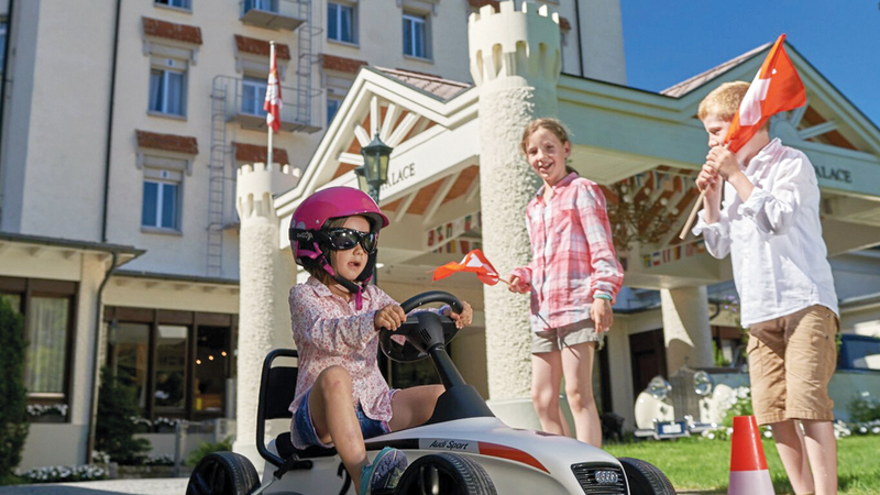 الفندق المستوحى من القصور التي نقرأ عنها في القصص الخيالية، يقع على سفح الجبل المطلّ على منطقة بيرنيز أوبرلاند ، ويعود تاريخ هذا الفندق إلى أكثر من قرن من الزمان، ويجري تجديد ديكور الغرف والأجنحة بشكل مستمر بما يتناسب مع احتياجات جميع النزلاء، بما في ذلك تخصيص طائرة هليكوبتر تأخذ السائح إلى المرتفعات لتناول وجبة الغداء.