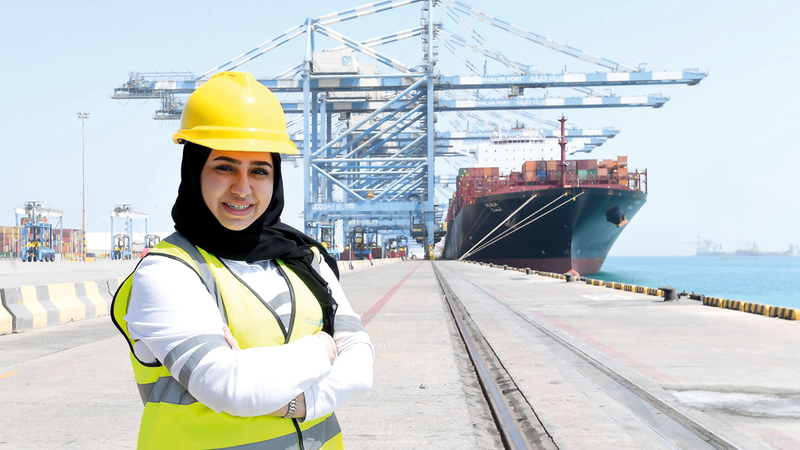 مواطنة تقود الرافعات الشاهقة في ميناء خليفة