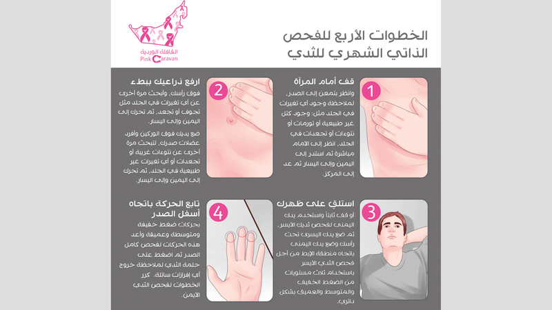 وأضافت أمل: «وقتها لم أكن متحمسة لإجراء الفحص، فجميع زميلاتي اللواتي خضعن للفحوص كانت نتائجهن عدم الإصابة بالمرض، وأذكر أنني كنت في عجلة من أمري وأود المغادرة، ولكن مع إصرار من الدكتورة سوسن الماضي، رئيس اللجنة الطبية والتوعوية في مسيرة فرسان القافلة الوردية، أجريت الفحص، وكانت النتيجة وجود كتلة صلبة، ليتم تحويلي إلى أحد المستشفيات في العاصمة أبوظبي، حيث تم أخذ خزعة من الثدي التي أكدت إصابتي بالمرض بعد فحصها».