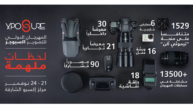 بمشاركة 90 مصوراً عالمياً محترفاً تنطلق، 21 فبراير المقبل، فعاليات الدورة الثالثة من المهرجان الدولي للتصوير «إكسبوجر» في مركز إكسبو الشارقة، وتقدم على مدار أربعة أيام متواصلة أكثر من 600 صورة في 30 معرضاً منفرداً، و120 عملاً فوتوغرافياً في ستة معارض جماعية لكبرى المؤسسات الفنية والصحافية والإبداعية العالمية.