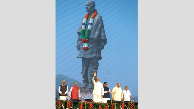 كشفت السلطات في ولاية غوجارات بغرب الهند عن أطول تمثال في العالم للاحتفاء بوحدة الهند. ويبلغ طول التمثال 182 متراً، ويجسّد سردار فالاباي باتيل، أحد أبطال كفاح الهند من أجل الحرية وأول نائب رئيس وزراء للبلاد.