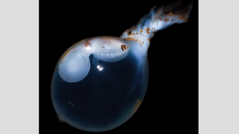 صورة لبيضة الحبار الصغير جرفها التيار، صوّرتها من خلال غطسة ليلية في منطقة تولبن بالفلبين.
