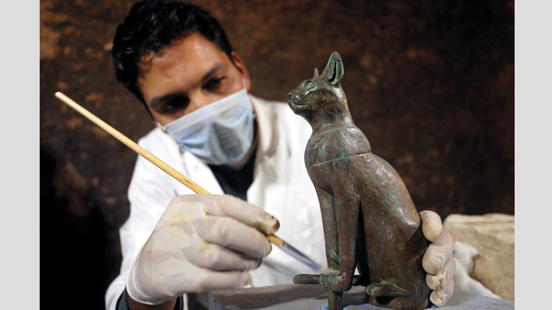 وقال وزير الآثار خالد العناني، في مؤتمر صحافي أمس، إن بعثة أثرية مصرية اكتشفت المقابر، وعثرت بداخلها على عدد كبير من تماثيل القطط والقطط المحنّطة.