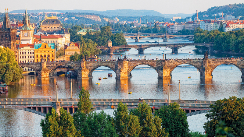 براغ عاصمة جمهورية التشيك وأكبر مدنها أيضاً، وتقع تحديداً على ضفاف نهر فلتافا، في المنطقة الوسطى من بوهيميا، وعلى العكس مما حدث مع بقية المدن الأوروبية، وتحديداً الوسطى، لم تشهد هذه المدينة دماراً كبيراً خلال الحرب العالمية الثانية، فبقيت محافظة على شكلها. ويسكن براغ نحو مليون نسمة، وتبلغ مساحتها نحو نصف كيلومتر مربع. ولُقبت بالعديد من الألقاب، كان أبرزها المدينة الذهبية، وقلب أوروبا، كما تعرف أيضاً بالمدينة ذات الـ100 برج لأنها تحتوي على عدد كبير من الأبراج، وتحديداً التي تقع فوق الكنائس والقصور، وفي عام 1992 تم تصنيفها واحدة من أهم المواقع التراثية العالمية.