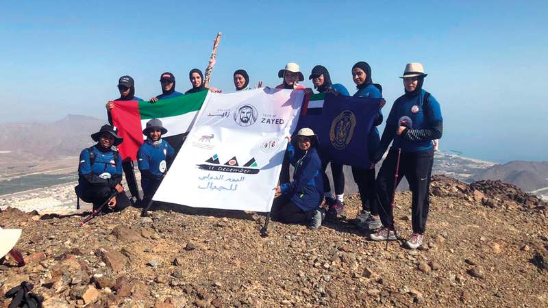 مُغامِرات «شرطة أبوظبي» يتسلقن أعلى قمة بخورفكان