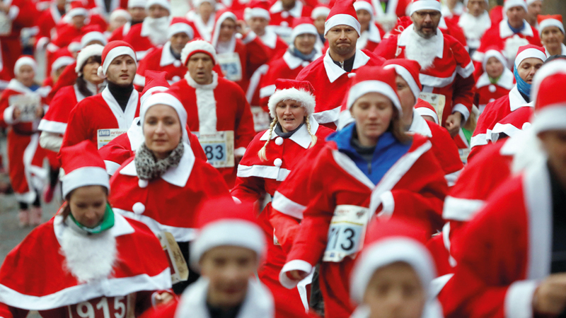 ملأ آلاف من «بابا نويل» أحد الشوارع الرئيسة في مدريد، أمس، إذ شاركوا في سباق خيري طوله خمسة كيلومترات، وسط أجواء احتفالية. ارتدى المشاركون في السباق زي «بابا نويل» الأحمر التقليدي، وركضوا إلى ميدان روبن داريو في باسيو دي كاستيلانا، ثم عادوا في سباق هدف منظموه إلى جمع أكبر عدد من العدائين الذين يرتدون ملابس «بابا نويل».